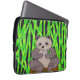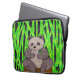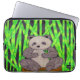 Representación dibujada a mano de una figura de panda en blanco y negro que sostiene una pequeña ramita de hojas de bambú verdes.