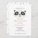 Ven y únete al panda - la invitación a la fiesta de cumpleaños de los niños multicolor. Diseño del respaldo de banda gráfica, el color puede cambiarse. Parte de una colección.