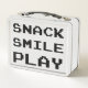 Haga más divertido el almuerzo con el aperitivo, Sonreír, Jugar Panda Lunch Box! Esta adorable caja de almuerzo incluye un bonito diseño de panda junto con la alegre frase "Snack, Smile, Play", que le aporta un toque divertido a la rutina de almuerzo de su hijo. Con un amplio interior, ofrece mucho espacio para todos sus aperitivos, sándwiches y dulces favoritos, lo que lo hace perfecto para la escuela, la guardería o los picnics. El diseño fácil de llevar le asegura a su hijo que puede llevar su caja de almuerzo a donde quiera que vaya con facilidad. Ideal para los amantes del panda y para los niños que disfrutan de diseños divertidos y vibrantes, esta lonchera es a la vez práctica y bonita. Haga de cada descanso de almuerzo un momento de alegría y emoción con el Snack, Smile, Play Panda Lunch Box - porque cada comida debería venir con una sonrisa! Perfecto para los jóvenes aventureros y los amantes del juego.
