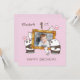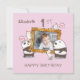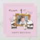 Kawaii pandas y gatos fotografian tarjeta de primer cumpleaños.