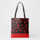 Patrón de labios rojos calientes con bolsa de algodón. Diseño especial de regalo romántico para los amantes del el día de San Valentín.