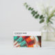 Una plantilla de tarjeta de visita con un panel superior blanco de 0,6" (15,24 mm) y espacio para una foto o imagen debajo. Disponible con una variedad de imágenes atractivas o puede añadir su propia imagen. Nombre de la empresa y tipo de negocio/Cotización en el panel superior delantero situado a la izquierda. La misma disposición básica se repite en el reverso de la tarjeta, pero sin la foto. El título Nombre y Trabajo se encuentran a la izquierda del panel superior del mismo modo que los detalles de la parte delantera de la tarjeta. Los detalles de Dirección, Telefonía, Web y correo electrónico se encuentran en el área inferior alineada a la derecha en el área inferior. El área inferior tiene un fondo de color plano que también se puede personalizar. Esta plantilla se puede utilizar tal cual o se puede personalizar más. Además de ofrecer la oportunidad de mostrar fotos de sus productos o imágenes relevantes para su negocio El área de fotos es particularmente apropiada para una variedad de imágenes decorativas, fotos de la naturaleza, por ejemplo detalles de flores y árboles, o incluso diseños totalmente abstractos y patrones decorativos, etc. La plantilla también ofrece mucho espacio para añadir logotipos adicionales, por ejemplo, en la parte superior derecha de los paneles superiores.