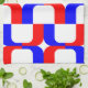 Un diseño geométrico audaz formado por formas de ángulo curvado en direcciones alternas con colores alternantes.