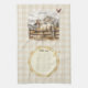 Horse in meadow 2026 calendar towel. Tan plaid background.