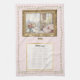 2026 Calendar towel tea towel - Framed scene of Paris from inside an apartment - decorative kitchen towel. Pink damask pattern background. The text "Paris" can be changed to any personalized message you like. Thanks for looking.