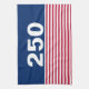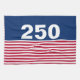 In celebration of America's 250th birthday, a blue field is at the top with 250 in white text. Red and white stripes are across the bottom that are reminiscent of the American flag.