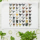 ¡Cuarenta y nueve gallinas en una variedad de razas y de colores parecen rápidas en todo del camisetas y de los posters a las tarjetas y a los delantales!
