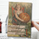 Una tarjeta de Acción de Gracias atemporal y trendy que presenta la obra de arte de 1899 "Niña en Silla Roja con Calabaza" de Fair Pub. House. Perfecta para aquellos que aman el encanto vintage con un toque moderno. Puedes personalizar fácilmente esta tarjeta con tu propio texto y cálidos deseos de vacaciones, lo que la convierte en una forma considerada de celebrar la temporada de gratitud.
