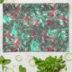 Paño De Cocina Aguamarina y rojo manchados, sucios de negro oscur