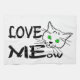 Amar el texto de MEow y un dibujo de un gato gracioso con ojos verdes. Una divertida toalla de cocina.