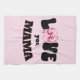 Cuta coqueta de diseño gráfico, diciendo "Te amo mamá". Puede hacer clic en personalizar y cambiar la palabra mamá a un nombre de hasta 6 letras.