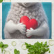 Divertido Ewe sosteniendo un corazón rojo.