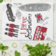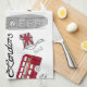 Un recuerdo de Londres de la diversión que ofrece guardias de palacio, Big Ben, las cabinas de teléfono rojas, y el autobús icónico del autobús de dos pisos en una toalla de cocina útil. Rojo, blanco, negro, y gris.