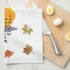 Hojas de otoño de diferentes colores y formas, rodeando las palabras "I Love Autumn". Árbol de colores otoñales en el centro. El texto es para personalizar.