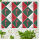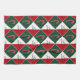 El patrón de diamante de los dulces y la palabra amor en cursiva se hace en colores rojo, verde y blanco.