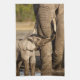 Esta linda imagen de animales bebé getty muestra a una cría de elefantes (Loxodonta africana) parada cerca de su madre en un agujero de agua en Tanzania.