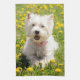 Esta linda foto de Getty Images muestra al perro Westie disfrutando de la primavera en un campo de dientes de león.