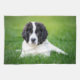 Esta bonita foto de Getty Images muestra un cachorro Landseer tirado en el césped del jardín.
