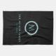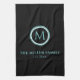 La elegante toalla de cocina monogramada cuenta con el nombre de la familia personalizado, el monograma inicial y la fecha fijada. Sencilla toalla de cocina negra con un moderno medallón decorativo en una paleta blanca y negra con acentos de color verde claro. Monograma inicial y apellido presentado en tipografía moderna con acentos verde azulados decorativos coordinados. Una adición perfecta a la decoración de su cocina o un regalo de bienvenida elegante para los nuevos propietarios en su vida o un regalo de cocina moderna para los recién casados o la elegante familia. Puede personalizar con su personalizado monograma inicial, nombre de familia y fecha establecida utilizando los campos proporcionados, o utilizar el botón "mensaje" para obtener ayuda del diseñador.