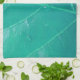 El arte abstracto de esta toalla de cocina es una fotografía original de ZoeSPEAK de una hoja de uva marina, después de una ducha de luz. Se pueden ver algunas gotas de lluvia en la foto de cierre, que muestra las venas de la hoja haciendo patrones lineales paralelos diagonalmente a través del diseño acuático tintado.