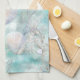 A soothing aqua ocean pattern kitchen towel featuring flowing waves and soft seashells with a dreamy coastal feel. This breezy beach design brings calm seaside charm, ideal for ocean lovers, coastal décor fans, summer gifting, beach events, and anyone who adores serene sea aesthetics.