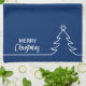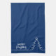 Estas modernas toallas de cocina de Feliz Navidad cuentan con un árbol de Navidad con una estrella en la parte superior sobre un fondo azul Navidad en el arte de la línea blanca y las palabras "Feliz Navidad" en el moderno guión escrito a mano y en la moderna tipografía. Estas toallas de moda y festivas alegrarán la cocina y la temporada de vacaciones. Si lo deseas, puedes cambiar el color de fondo para poder crear una colección de estas toallas de calidad.