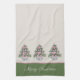 Esta toalla de cocina preamppy incluye hermosos árboles de Navidad rosas y verdes en las decorativas macetas Chinoiserie. Personalice el mensaje con su elección de texto especial.