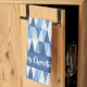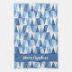 Esta toalla de cocina tiene un patrón de árboles de Navidad en un estilo minimalista de diseño de triángulos geométricos. Este es el color azul y blanco. Puedes guardar el saludo de Feliz Navidad o cambiar el texto a tu nombre o a cualquier otro dicho que quieras. También se puede hacer el patrón en esta toalla de cocina más pequeña o más grande. Una linda toalla de cocina moderna con motivos de Navidad que sería genial para alegrar la cocina en esta temporada de vacaciones.