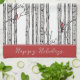 Esta moderna toalla de cocina cuenta con abedules dibujados a mano con pájaros cardenales rojos sobre ramas de tinta negra, con sombra de escotilla cruzada y un elegante fondo blanco. Personaliza con tu saludo de Navidad favorito, un nombre o un nombre de familia.