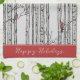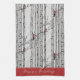 Toalla de cocina moderna con abedules dibujados a mano con pájaros cardenales rojos sobre ramas de tinta negra, con sombra de escotilla cruzada, en un elegante fondo gris muy claro. Personaliza con tu saludo de Navidad favorito, un nombre o un nombre de familia.