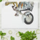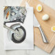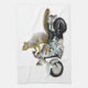 Una ardilla monta la motocicleta histoy, cola que sopla en el viento.