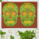 El cráneo inspirado en My Day of the Dead celebra la vida y la muerte con un collage de mis pinturas de hojas de álamos y presenta los brillantes verdes de la primavera.