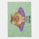 Un gato persa naranja sobre una almohada morada está mostrando su actitud.