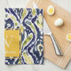 Paño De Cocina Audaz amarillo azul abstracto clásico ikat monogra