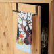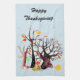 Esta imagen está diseñada como un día de otoño con la nieve cayendo. Los árboles están perdiendo sus hojas y los pavos están sentados sobre sus verduras y frutas. Esta toalla de cocina está disponible en varios estilos. Un gran añadido a la decoración de las vacaciones.