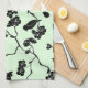 Paño De Cocina Aves con flores de cerezo negro en verde menta