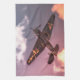 Este es un hermoso avión de bombarderos antiguos que vuela por el cielo. Las nubes reflejan el sol con un bonito color naranja. Se puede ver la hélice del avión así como la estrella debajo de las alas. Esta es sólo una imagen clásica que tu amante de aviador o piloto en tu vida valorará.