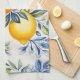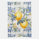Toallas de cocina de limón con azulejo mediterráneo azul y blanco. Hermoso fondo con limones pintados. Puedes agregar texto para personalizar.