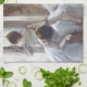 Bailarines Edgar Degas. Retrato bonito en tonos marrón blanco pastel. Ballerinas con faldas blancas van a clase. Los chicas enderezan sus vestidos. Reproducción de obras famosas de imágenes artísticas de dominio público.