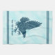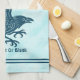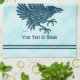Una simple silueta azul de un cuervo vivo (Corvus corax) de estilo nórdico-celta, superpuesta a una imagen de fondo nevada. Personalizar agregando su propio texto.