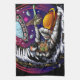 Arte vectorial original de un astronauta que tiene queso de luna y pasa una tajada a un alien. Creado en vector.