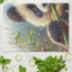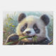 Pintura de lindos pandas jóvenes comiendo brotes de bambú verde