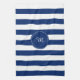 Bandas monogramadas reales azules y blancas. Patrón real rayado azul y blanco con monograma.