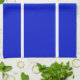Este divertido y audaz diseño presenta delgadas rayas de acento blanco contra un vibrante fondo azul real.