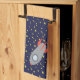 Paño De Cocina Barco de cohetes retro con fondo de patrón estelar