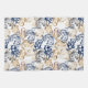 Elegant vintage vector pattern featuring flowing baroque-style floral scrolls in navy blue and gold on a clean white background, creating a classic, luxurious, and timeless ornamental design.