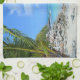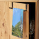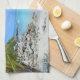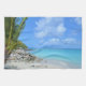 Kitchen towel with a scenic tropical photograph. A secluded beach with white sand and turquoise water.