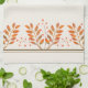 Una hermosa toalla de cocina con un ilustracion acuarela de bayas rojas y hojas de otoño doradas.