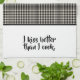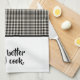 La divertida toalla de cocina tiene un patrón de manchas negras y blancas con el texto superior "Beso mejor que cocinar". Gran idea de regalo para cocineros novatos así como para los expertos en cocina...y otros departamentos.