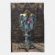 Goblet medieval morado y azul acuático con dorado en la biblioteca medieval del castillo gótico.